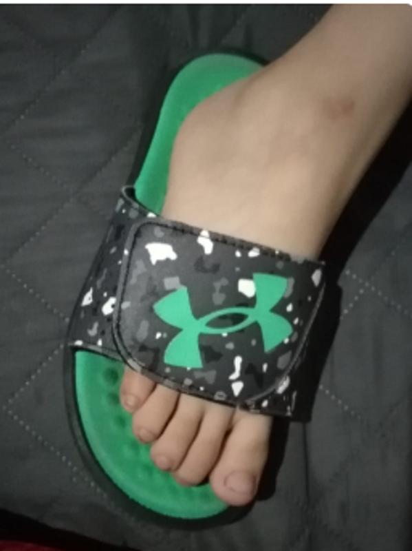 The Grade School UA Ignite Pro Graphic Strap Slides are not inherently waterproof. Please check out the Grade School UA Mercenary Slides!